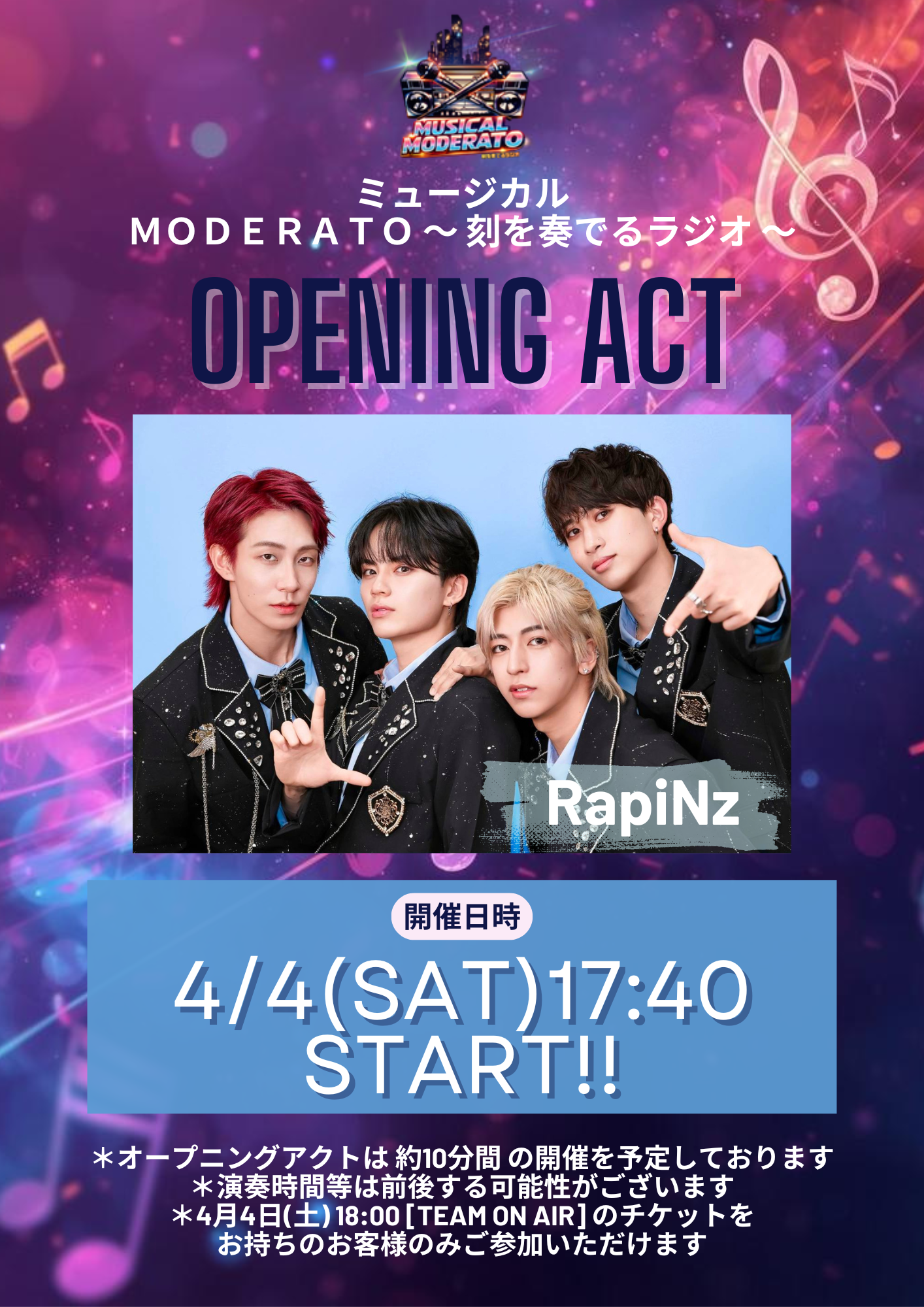 RapiNzがオープニングアクトとして出演させていただきます。